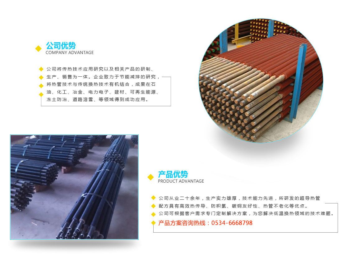 年的技術(shù)人員組建而成。公司研發(fā)的超導(dǎo)熱管配方具有高效熱傳導(dǎo)、防積氫、碳鋼友好性、熱管不老化等優(yōu)點。我公司可根據(jù) 客戶需求專門定制解決方案,為你解決低溫?fù)Q熱領(lǐng)域的技術(shù)難題。 公司擁有高頻焊接生產(chǎn)線、高標(biāo)準(zhǔn)自動清洗線、氬弧自動管焊接、全套金屬成型機(jī)、主要生產(chǎn)翅片管,翅片熱管,鋼鋁復(fù)合管,熱管式空氣預(yù)熱器,石化配件,公司設(shè)有獨立的中心實驗室,配備完善的熱性能總 和檢測設(shè)備 與設(shè)施,為配套產(chǎn)品進(jìn)行設(shè)計和研發(fā)提供了堅實保障。 公司以科學(xué)的生產(chǎn)工藝、嚴(yán)格的質(zhì)量管理、先進(jìn)的服務(wù)理念、合理的產(chǎn)品價格,在國內(nèi)外廣大用戶中贏得了良好的聲譽(yù),深受國內(nèi)外廣大客戶的信賴。 ![]() |